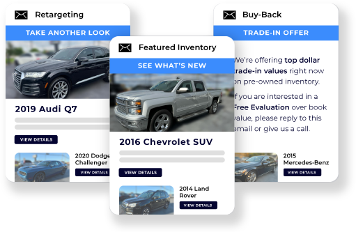Bring back serious buyers with automated emails featuring the exact vehicles they viewed on your site — so you're engaging people already in-market.