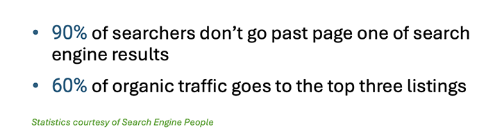 Search Engine Optimization is a long-term, everchanging process that takes time to execute. It will depend on what you want to rank for and its overall competition for ranking. Continuing to invest in ongoing SEO allows us to adapt your website to SEO best practices, algorithm changes, and audience preferences over time. It is important to keep your website up to date, and constantly build new content that will help you rank for your targeted keywords and increase your audience.