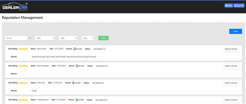 Reviews can either bring customers to your door or drive them to your competition. Don't leave your reputation to chance. Let our Reputation Management software help your dealership get those hard-earned positive reviews it deserves.