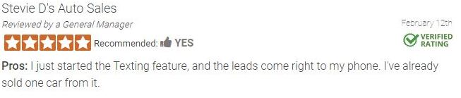 Add the power of texting to your website. The fact is consumers are much more likely to interact via text than any other method. Increase your leads and sales with the powerful new texting feature from Dealer Car Search.